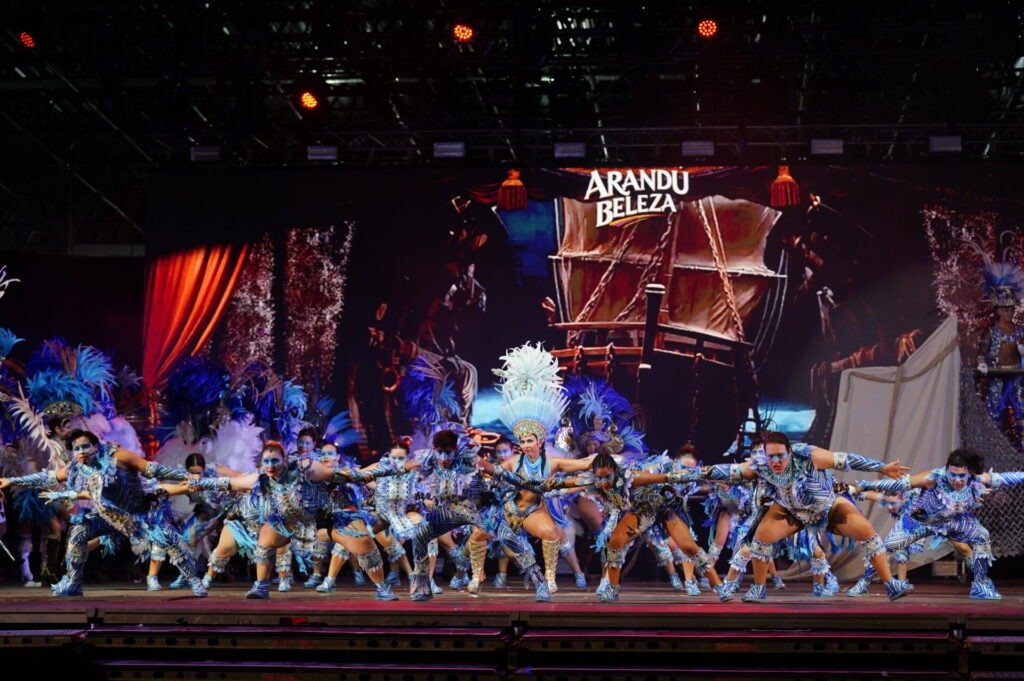 Posteriormente, Ará Berá presentó “El Rayo de la Locura”, destacándose por su despliegue coreográfico y el acompañamiento de recursos visuales. En el marco de su vigésimo aniversario, Arandú Beleza ofreció “Agua del Cielo”, una puesta basada en la espiritualidad guaraní y la identidad cultural. El cierre de la velada fue protagonizado por Sapucay, que presentó “Sapucay del alma mía”, una propuesta que integró canto, vestuario y escenografía en una presentación de alto impacto artístico.