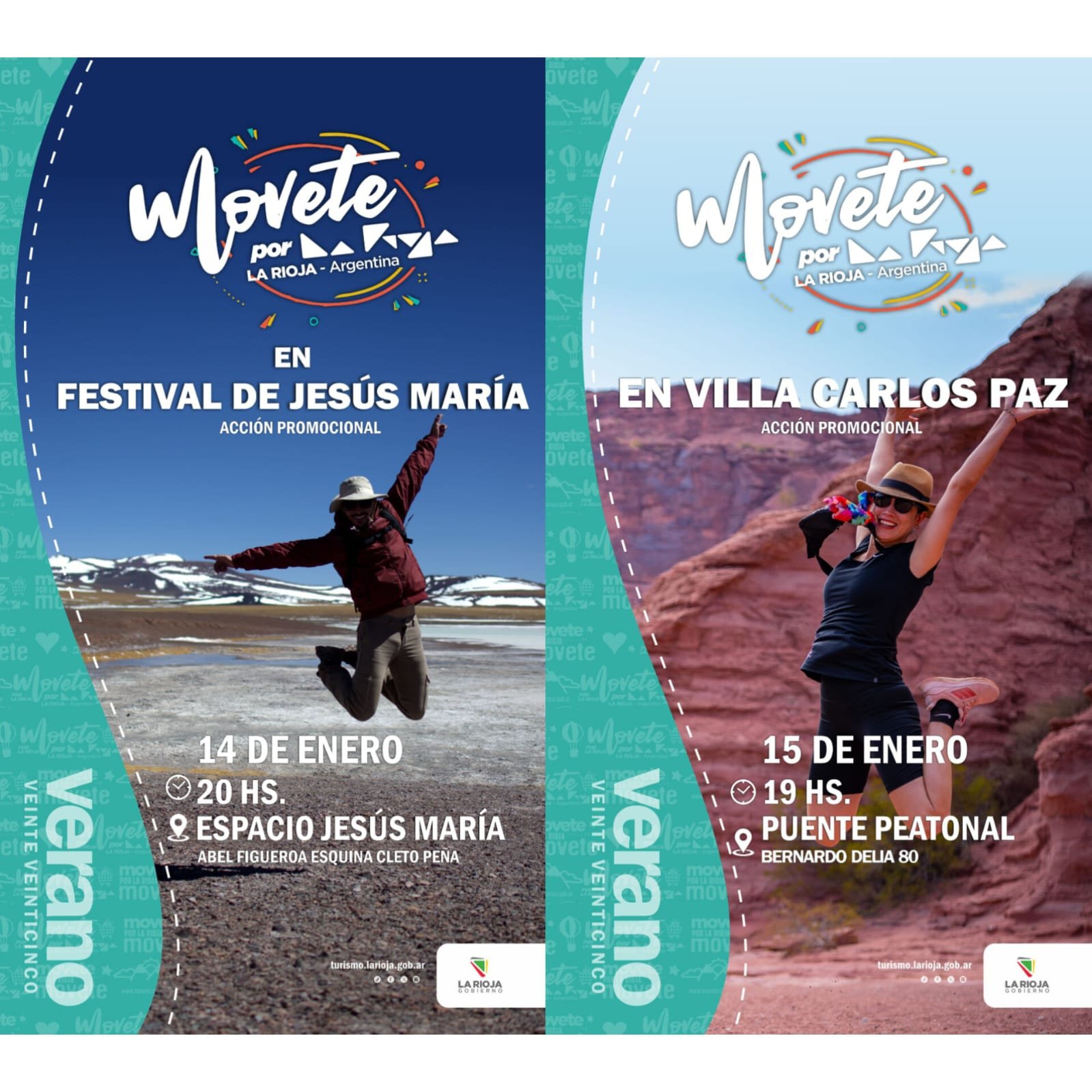 Abriendo la agenda de enero, toda la oferta turística estará presente en el Festival de Jesús María coincidiendo con la presentación de Sergio Galleguillo, mostrando un anticipo del inigualable febrero chayero. Carlos Paz y Cosquín se suman a la grilla de actividades en la vía pública, en donde el encanto riojano seducirá a las y los transeúntes invitándolos a conocer la provincia. Finalmente, la versión veraniega de La Rioja llegará al Paseo del Norte en Pinamar ofreciendo un amplio abanico de actividades como degustación de platos típicos y vinos, canto y danza.