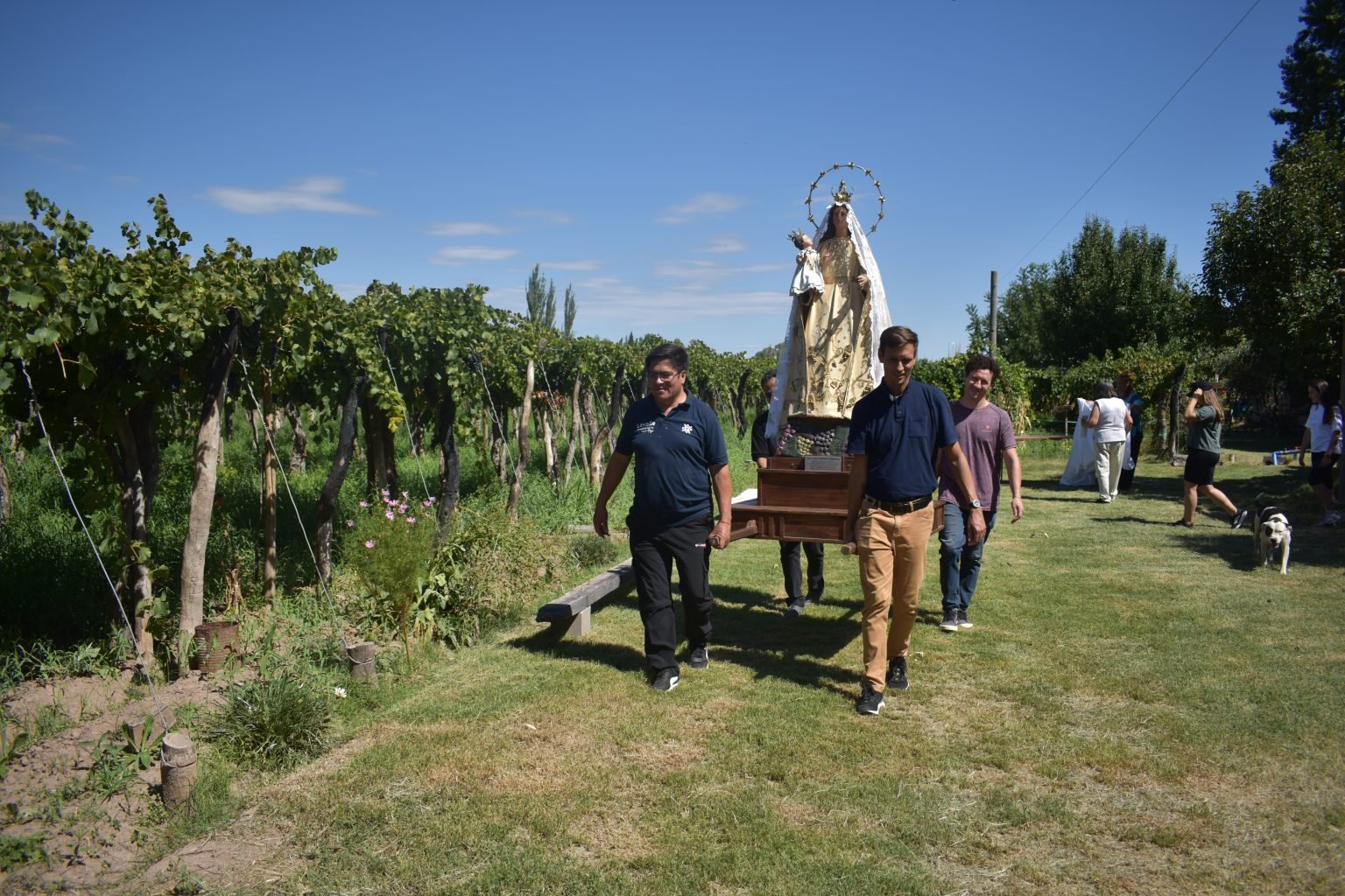 La peregrinación de la patrona de los viñedos comenzó el fin de semana pasado su tradicional recorrido por bodegas, parajes rurales, fincas, iglesias y más espacios de ambos Lavalle, San Martín y Godoy Cruz. Su derrotero finalizará en la Bendición de los Frutos, dando inicio al calendario oficial de la Fiesta Nacional de la Vendimia.