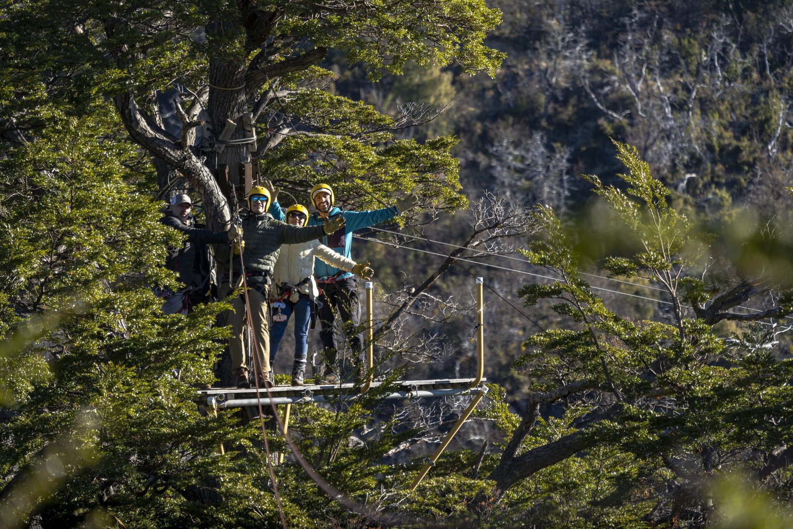 Originario de Costa Rica, en Pueblo Alto esta experiencia se reinventa entre coihues, lengas y cipreses, especies emblemáticas del Bosque Andino Patagónico. La experiencia completa consiste en un circuito de 5 estaciones que recorre 2 kilómetros con tramos que pueden llegar a los 500 metros a través de cables dobles, hilados especialmente bajo estándares internacionales que propician seguridad, comodidad y fluidez.
