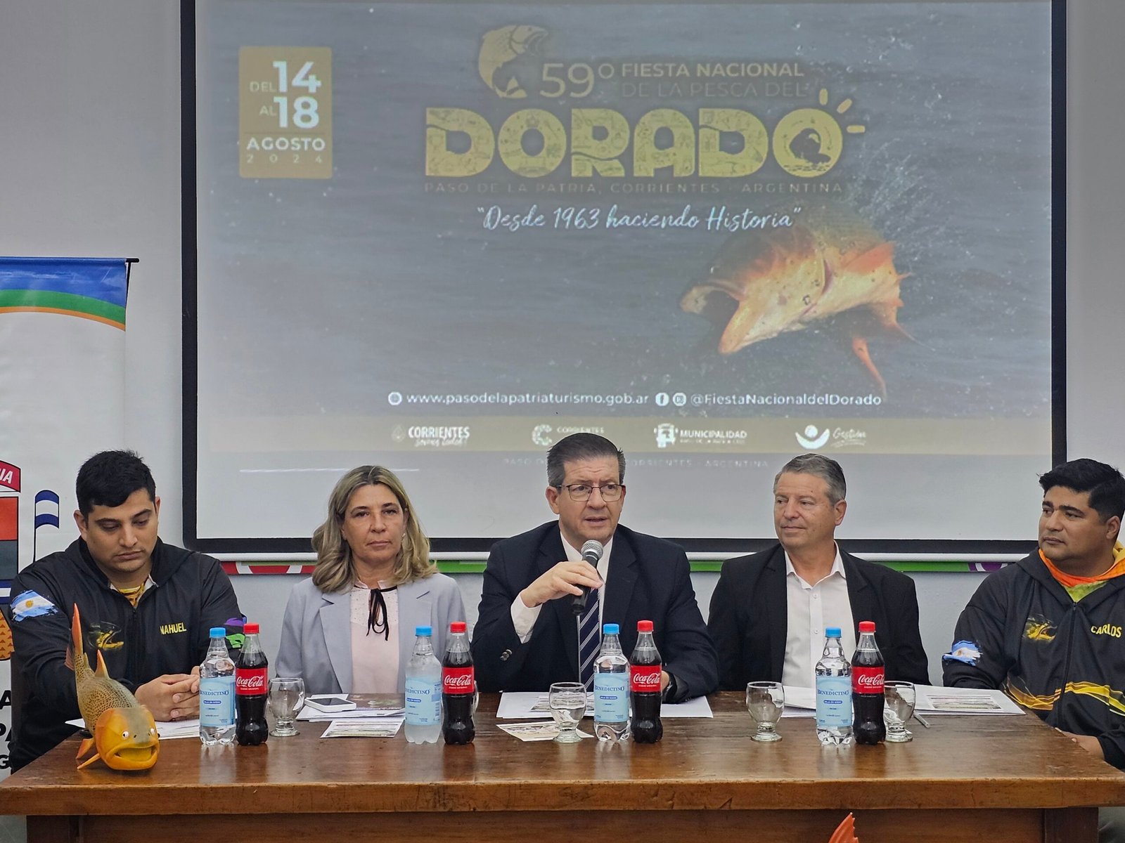 La presentación fue encabezada por el vicegobernador de la Provincia, Pedro Braillard Poccard, quien estuvo acompañado de la ministra de Turismo Alejandra Eliciri; el Intendente de Paso de la Patria, Guillermo Osnaghi; el secretario de Turismo municipal, Nahuel Ramos; el fiscal general del torneo pesquero, Carlos González y la Embajadora Nacional edición 2023, Sabrina Campodónico.
