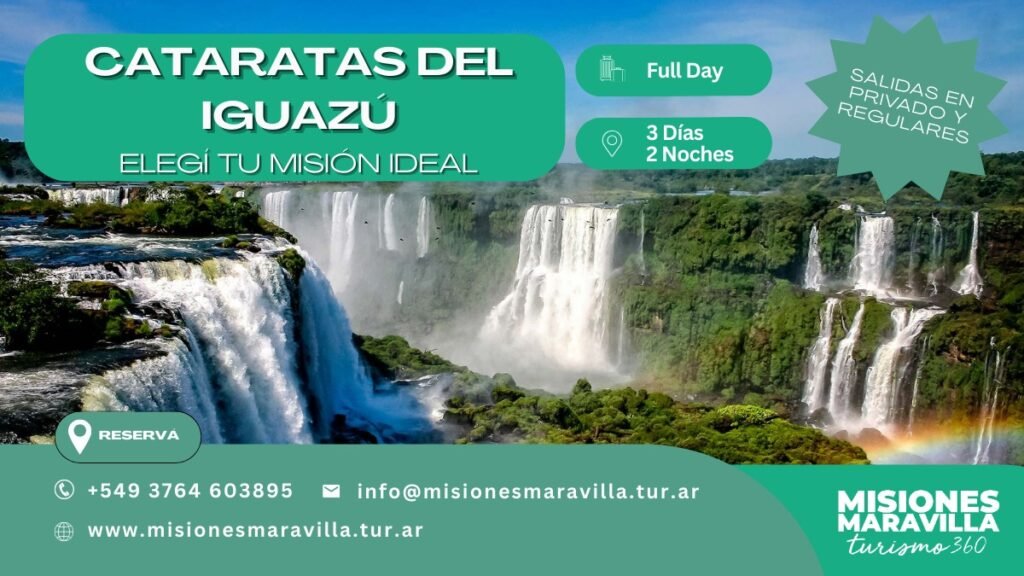 El clásico que nunca falla pero que siempre es diferente. Con opciones de excursiones de un día o paquetes completos de 2 noches y 3 días, Misiones Maravilla EVT organiza todo: traslado desde Posadas, entradas al Parque Nacional Iguazú, guías locales y visitas opcionales al Acuario de Montecarlo y las minas de Wanda.