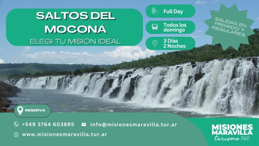 Con salidas los domingos, excursiones de día completo o programas de varios días, el recorrido a los Saltos del Moconá permite conocer uno de los fenómenos naturales más impactantes de la región. A diferencia de otros saltos, aquí el agua cae de manera longitudinal sobre el río Uruguay.
