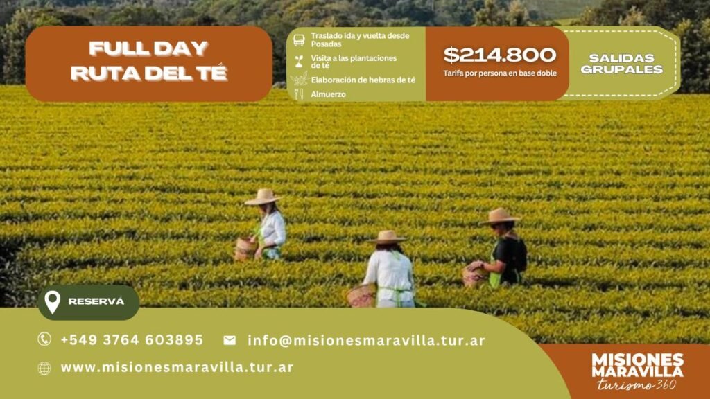 Una propuesta distinta para quienes buscan experiencias productivas. En Oberá, se visita un establecimiento de té donde es posible participar de la cosecha y conocer el proceso de elaboración desde la hoja hasta la taza. Ideal para quienes valoran el vínculo entre territorio, trabajo y tradición.
