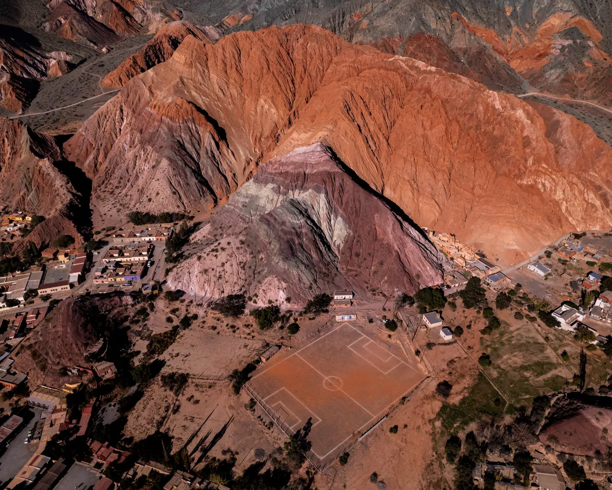 Purmamarca, destacada por su belleza paisajística y cultural, sumado al atractivo principal del Cerro de los 7 Colores, ahora también cuenta con la cancha de fútbol más extraordinaria del planeta que fue elegida oportunamente para formar parte del documental “GreenLand” por ESPN originals.