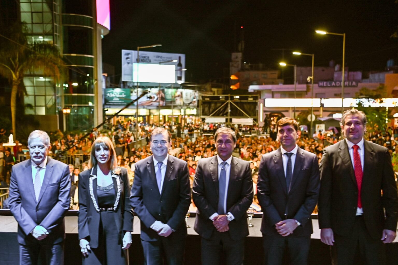El vicegobernador Carlos Silva Neder; el jefe de Gabinete, Elías Suárez; la senadora Claudia de Zamora; el subsecretario de Turismo, Nelson Bravo y el intendente termense Jorge Mukdise acompañaron al mandatario en el palco.