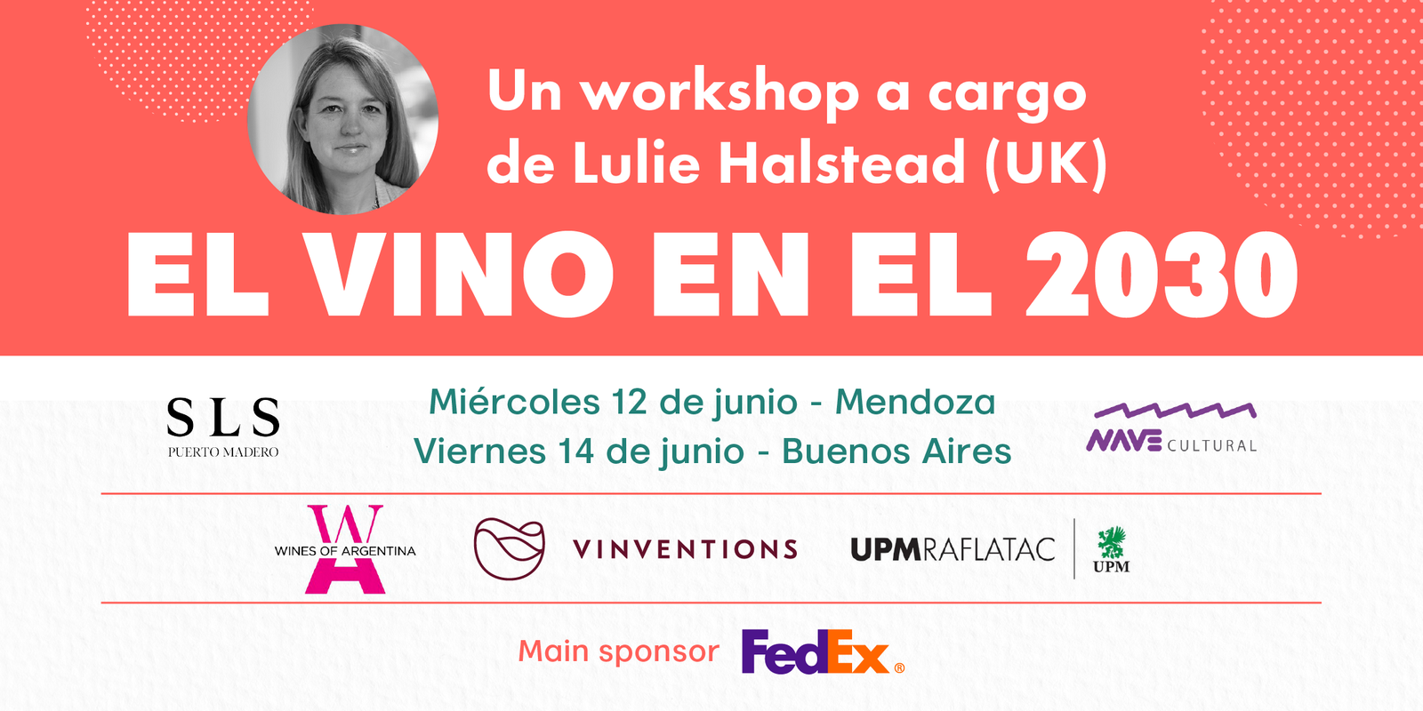 Orientado a representantes de toda la cadena de valor de la industria del vino, el encuentro se replicará en Mendoza y en Buenos Aires los días 12 y 14 de junio respectivamente, con 3 horas de duración cada uno. Cuenta con el auspicio de FedEx, la Nave Cultural (Ciudad de Mendoza) y OWN Hotels (SLS Puerto Madero), a través de la Asociación de Hoteles de Turismo de la República Argentina (AHT).