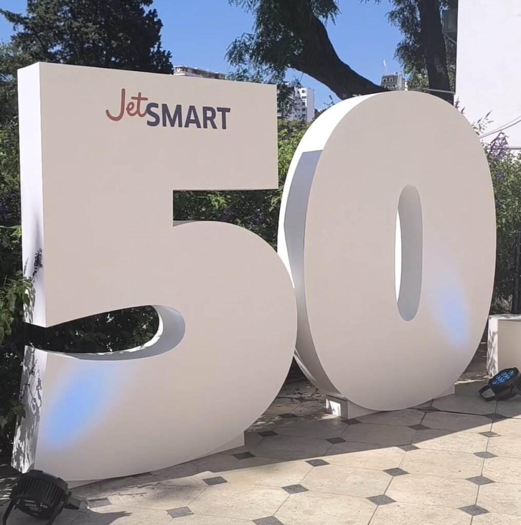La compañía low cost JetSMART celebró en Buenos Aires con miembros de la industria, autoridades, y representantes de la prensa la incorporación de su avión número 50, que coincide con otras dos marcas simbólicas para la compañía: haber movilizado 50 millones de pasajeros y alcanzar los 50 destinos en su red con los nuevos vuelos hacia Natal.