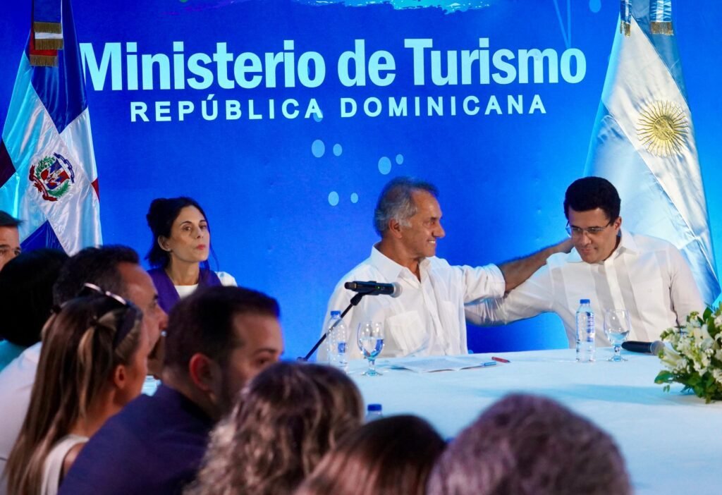 Daniel Scioli, durante su agenda de actividades en la República Dominicana, firmó con el ministro de Turismo, David Collado, una declaración conjunta entre los organismos de ambos países. En ese marco, y con la presencia conjunta de representantes del sector turístico, Scioli también se comunicó con el presidente de la República, Luis Abinader, quién dio todo el apoyo institucional al evento, al impulso del turismo y la hermandad entre los dos países.