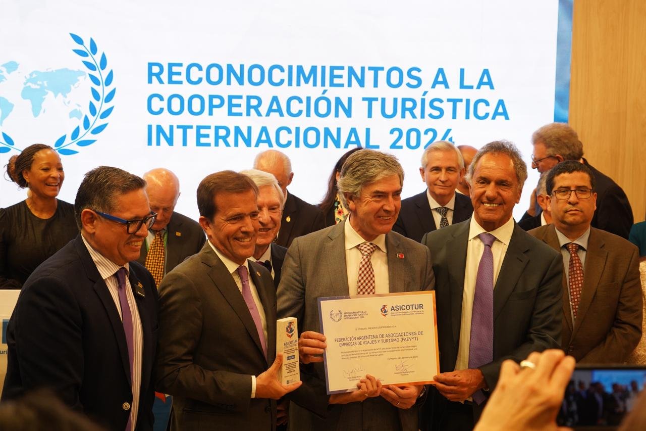 La Federación Argentina de Asociaciones de Agencias de Viajes y Turismo (FAEVYT) ha sido distinguida por la Asociación Internacional para la Cooperación y el Desarrollo Turísticos (ASICOTUR) con un reconocimiento en la categoría «Entidades» durante la edición 2024 de los Reconocimientos a la Cooperación Turística Internacional.