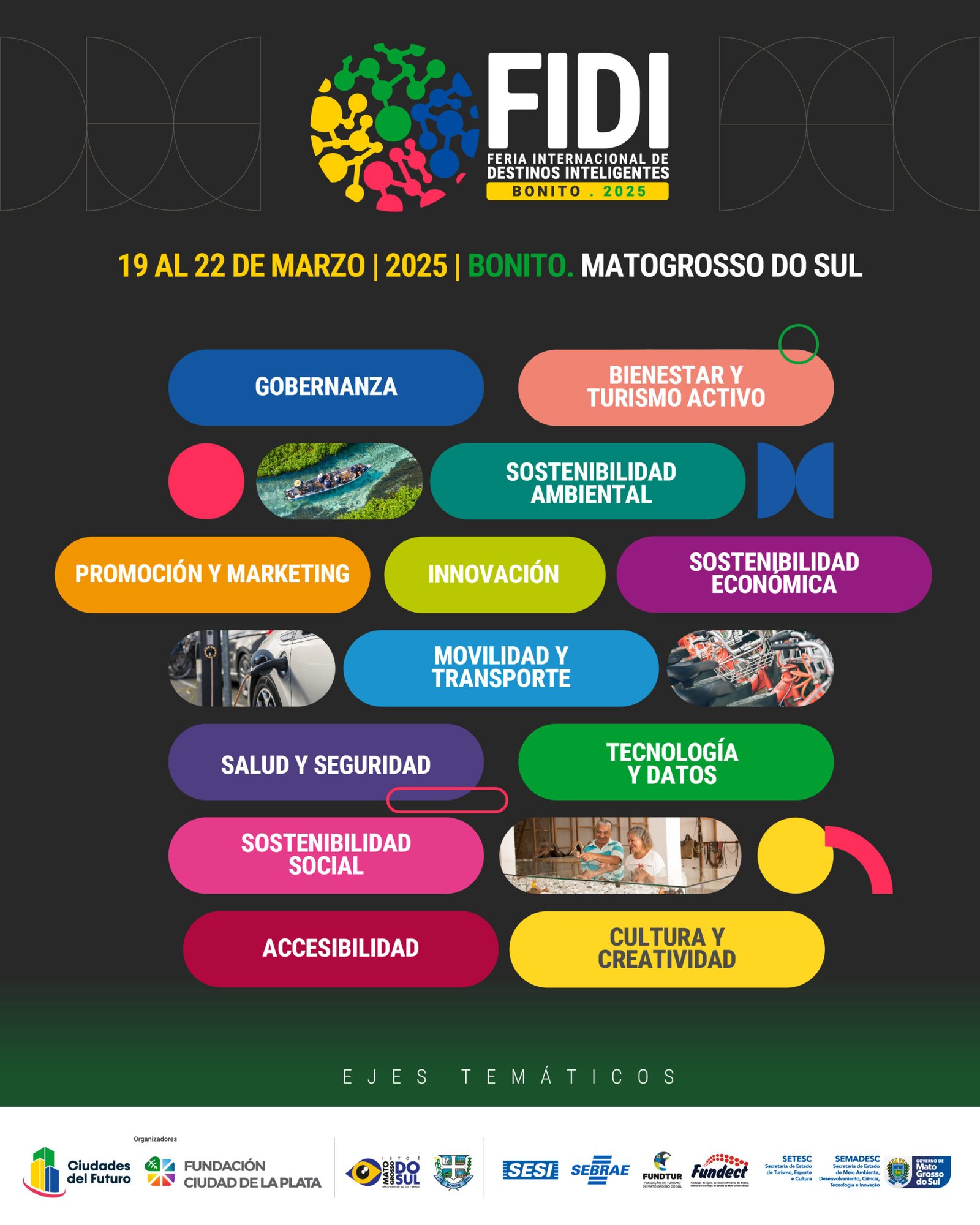 La Feria Internacional de Destinos Inteligentes (FIDI) 2025 se celebrará del 19 al 22 de marzo en la Ciudad de Bonito, Brasil, un destino mundialmente reconocido por su ecoturismo y su impresionante belleza natural. Bajo el lema “ECOTURISMO INTELIGENTE, SALUDABLE Y SEGURO”.
