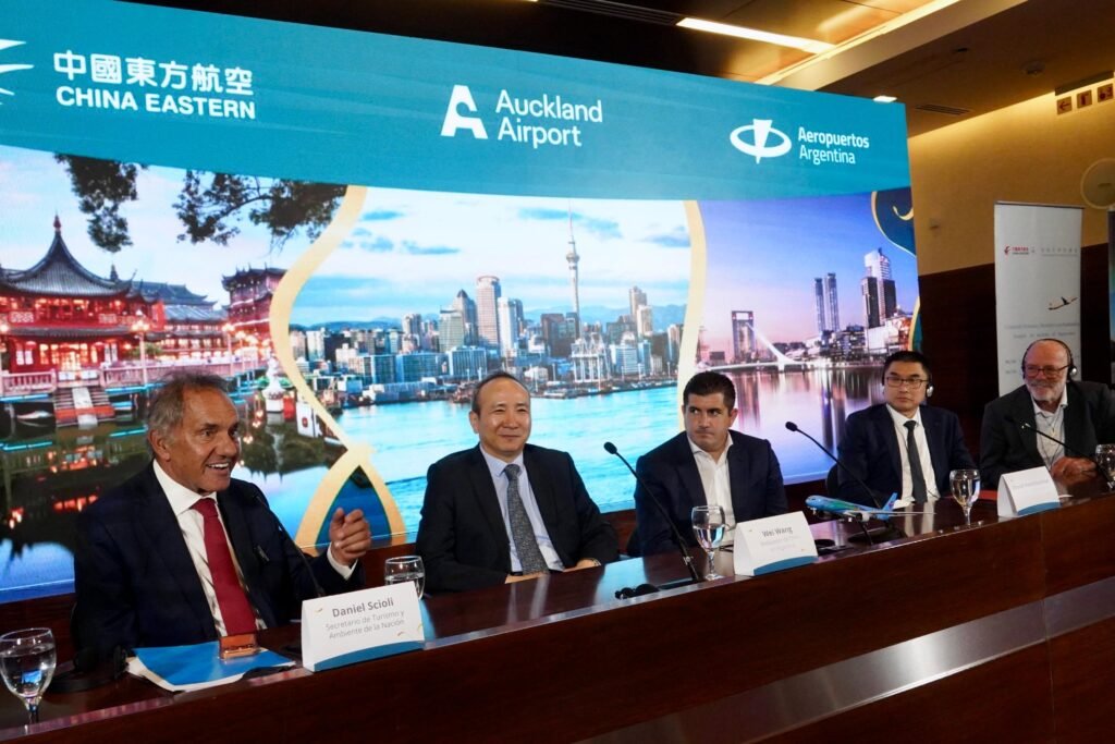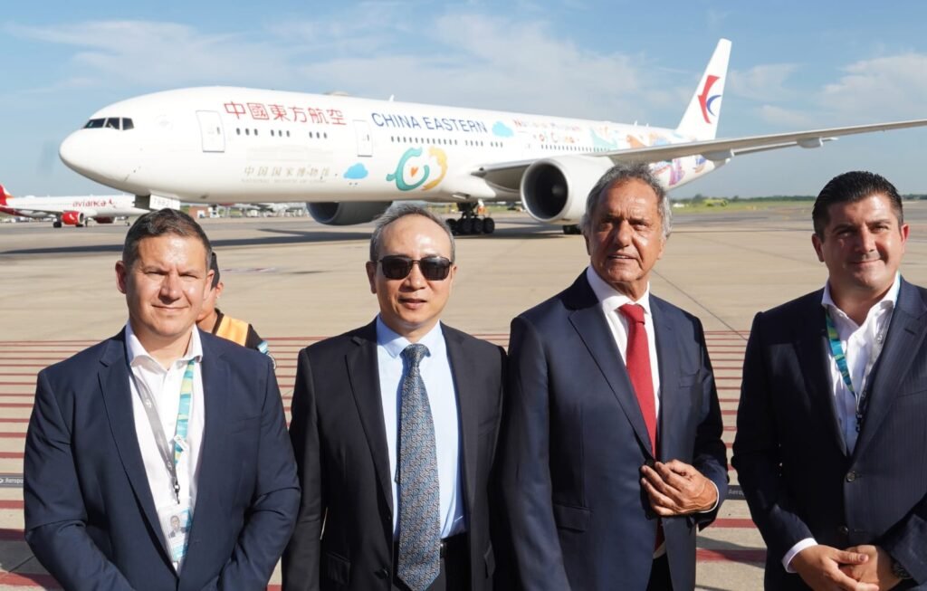 El secretario de Turismo y Ambiente de la Nación, Daniel Scioli, asistió a la recepción del vuelo inaugural de la ruta Shanghái-Auckland-Ezeiza, operado por la compañía China Eastern Airlines. Así se dio inicio a la primera conexión regular comercial entre China y Argentina, con dos frecuencias semanales, “que corrobora el rumbo trazado hacia la creación de nuevas rutas, más turismo y mayor actividad económica”, destacan.