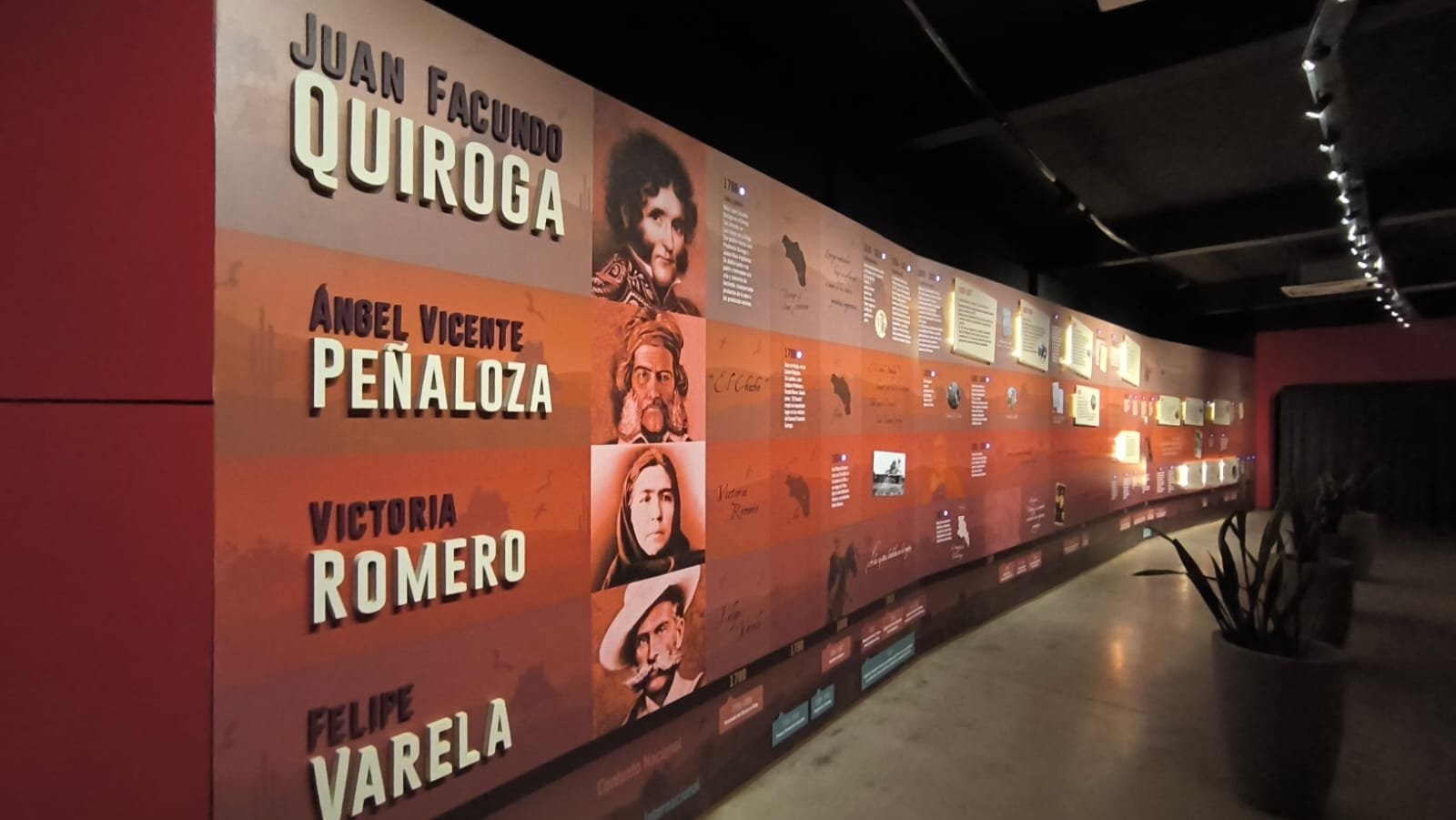 Dentro de la sala sorprende una línea de tiempo de 15 metros de largo con información histórica detallada que incorpora nuevos medios para el aprendizaje: tecnología de realidad aumentada para que los visitantes puedan disfrutar de material audiovisual a medida que se desplazan año a año en la historia de nuestra provincia.
