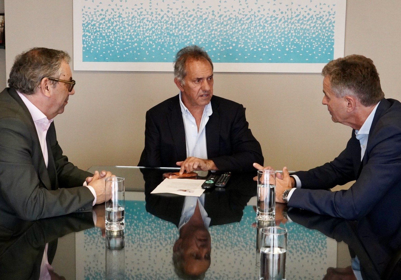 El secretario de Turismo, Ambiente y Deportes de la Nación, Daniel Scioli, recibió en su despacho a Detlef Braun, miembro del consejo Ejecutivo de Messe Frankfurt, y a Fernando Gorbarán, CEO local de la empresa, para diagramar una agenda de trabajo orientada a incrementar la realización de ferias, congresos y otros eventos de convocatoria mundial en la Argentina.