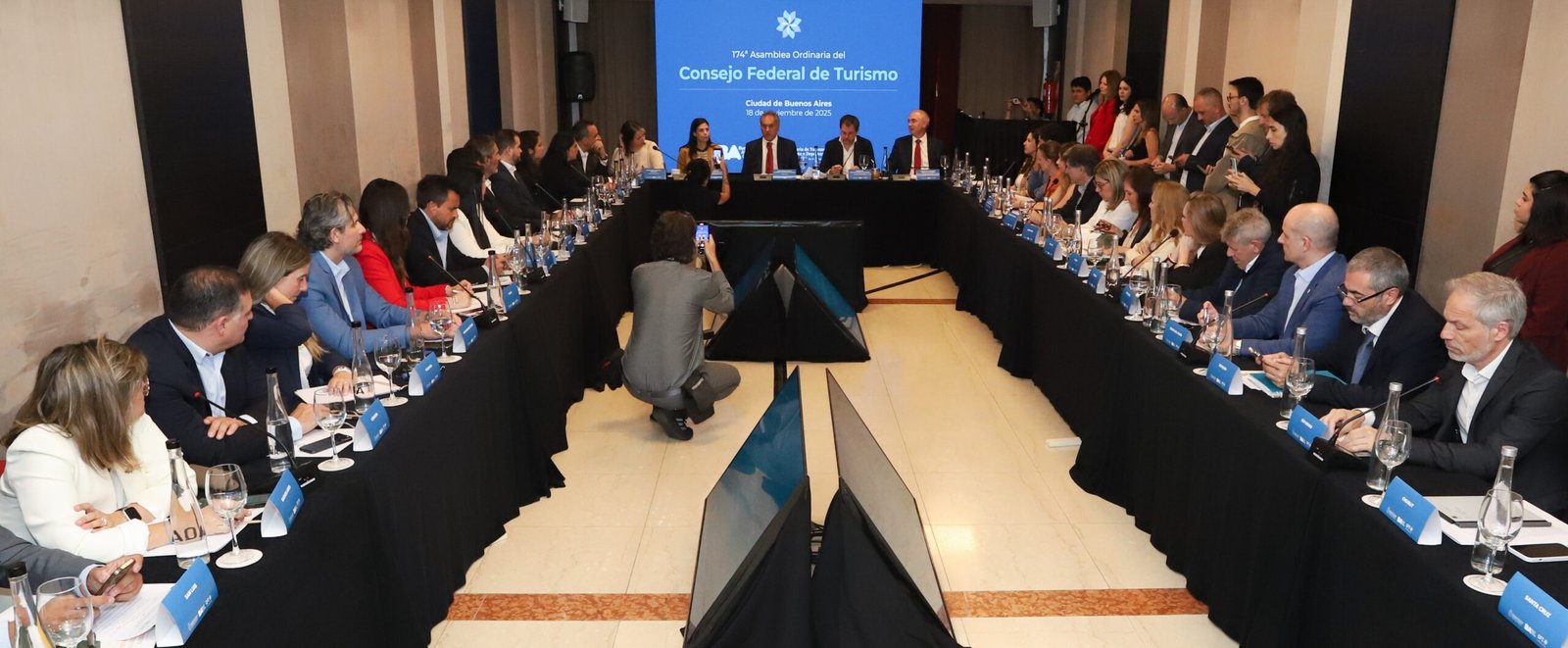 La 174° Asamblea Ordinaria del Consejo Federal de Turismo (CFT) realizada en la ciudad de Buenos Aires abordó una variada agenda temática que recorrió tópicos nacionales e internacionales. Fue encabezada por el secretario de Turismo, Ambiente y Deportes de la Nación, Daniel Scioli, junto al presidente del CFT y del Ente de Turismo de la Ciudad Autónoma de Buenos Aires, Valentín Díaz Gilligan, a la presidenta de la Cámara Argentina de Turismo, Laura Teruel; y a las autoridades provinciales del sector. El recorrido incluyó aspectos promocionales de cara al próximo verano, acciones que desarrollarán en ese marco los distintos destinos, el calendario internacional 2026 y temas de fondo como el debate que se dará en torno de una «modernización laboral».