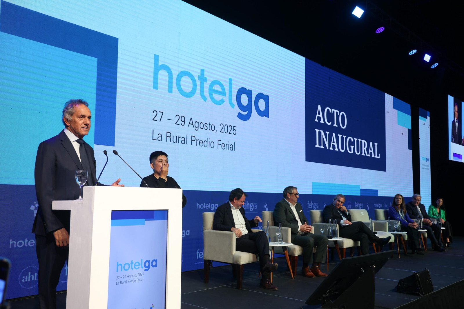El secretario de Turismo, Ambiente y Deportes de la Nación, Daniel Scioli, dio apertura formal a Hotelga, la cita en hotelería y gastronomía más importante del país, que se realiza en La Rural hasta este viernes, en un contexto de novedades, lanzamientos y nuevas tendencias para el sector.