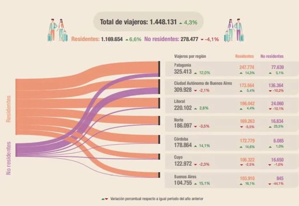 El gasto de turistas extranjeros fue de US$ 208,5 millones contra US$ 598,2 millones gastados por argentinos en el exterior, resultando en una pérdida neta de US$ 389,7 millones.
