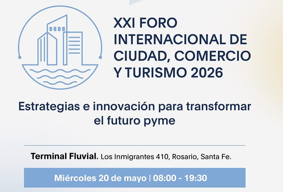 La Confederación Argentina de la Mediana Empresa (CAME) organiza para todas sus entidades asociadas a participar del XXI Foro Internacional de Ciudad, Comercio y Turismo 2026, que se realizará el próximo 20 de mayo, de 8.00 a 19.30, en la Terminal Fluvial (Los Inmigrantes 410) de la ciudad de Rosario. El encuentro es organizado en conjunto con la Confederación de Comercio y Servicios de Santa Fe y la Asociación Empresaria de Rosario (AER).