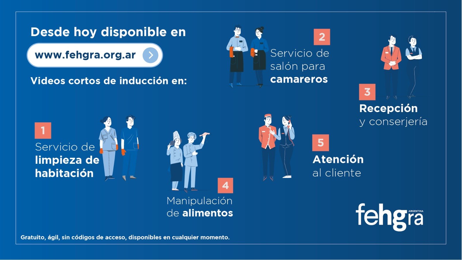El Departamento de Capacitación y Formación Profesional de la Federación Empresaria Hotelera Gastronómica de la República Argentina (FEHGRA) implementa una innovadora modalidad de capacitación “Videos Animados para la Capacitación de Empleados Hoteleros Gastronómicos”.