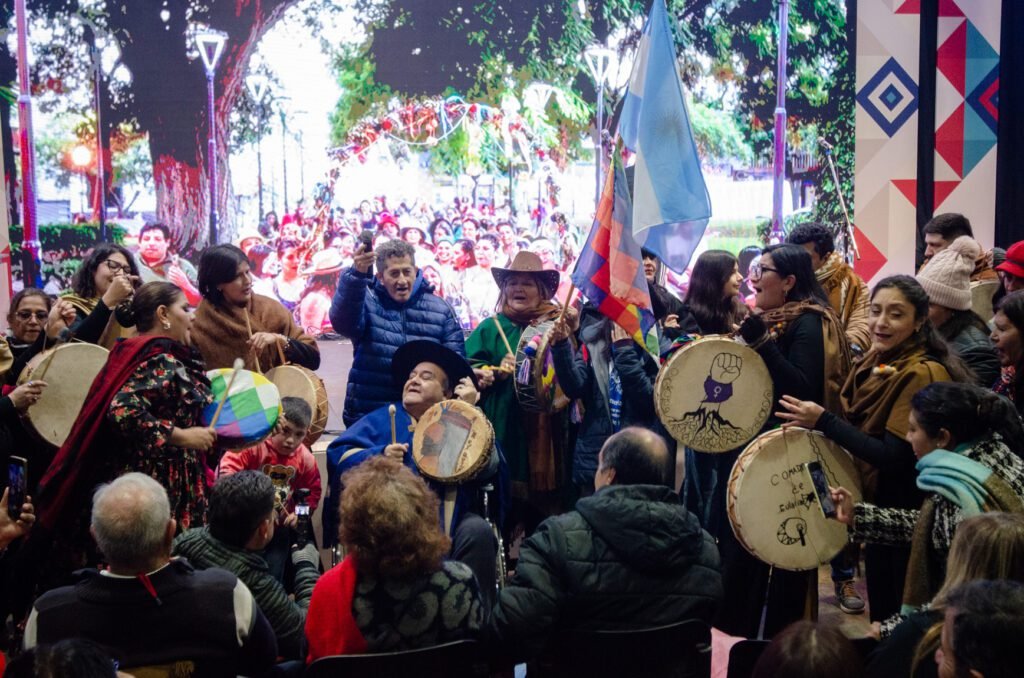 El Predio Ferial fue escenario de una intervención artística y comunitaria profundamente conmovedora: “Catamarca Retumba”, una caminata ceremonial que recorrió los pasillos del Poncho con cajas, coplas, vidalas y tonadas, para reivindicar una de las expresiones culturales más profundas del pueblo catamarqueño.