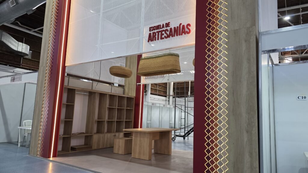 Los stands de las escuelas de Artesanías y Orfebrería, ubicadas en el corazón del pabellón, se alzarán columnas decoradas con guardas de colores y luces, evocando la estructura simbólica del trabajo artesanal. Este espacio rendirá homenaje a la materia prima, el oficio y la tradición de quienes mantienen viva nuestra cultura.