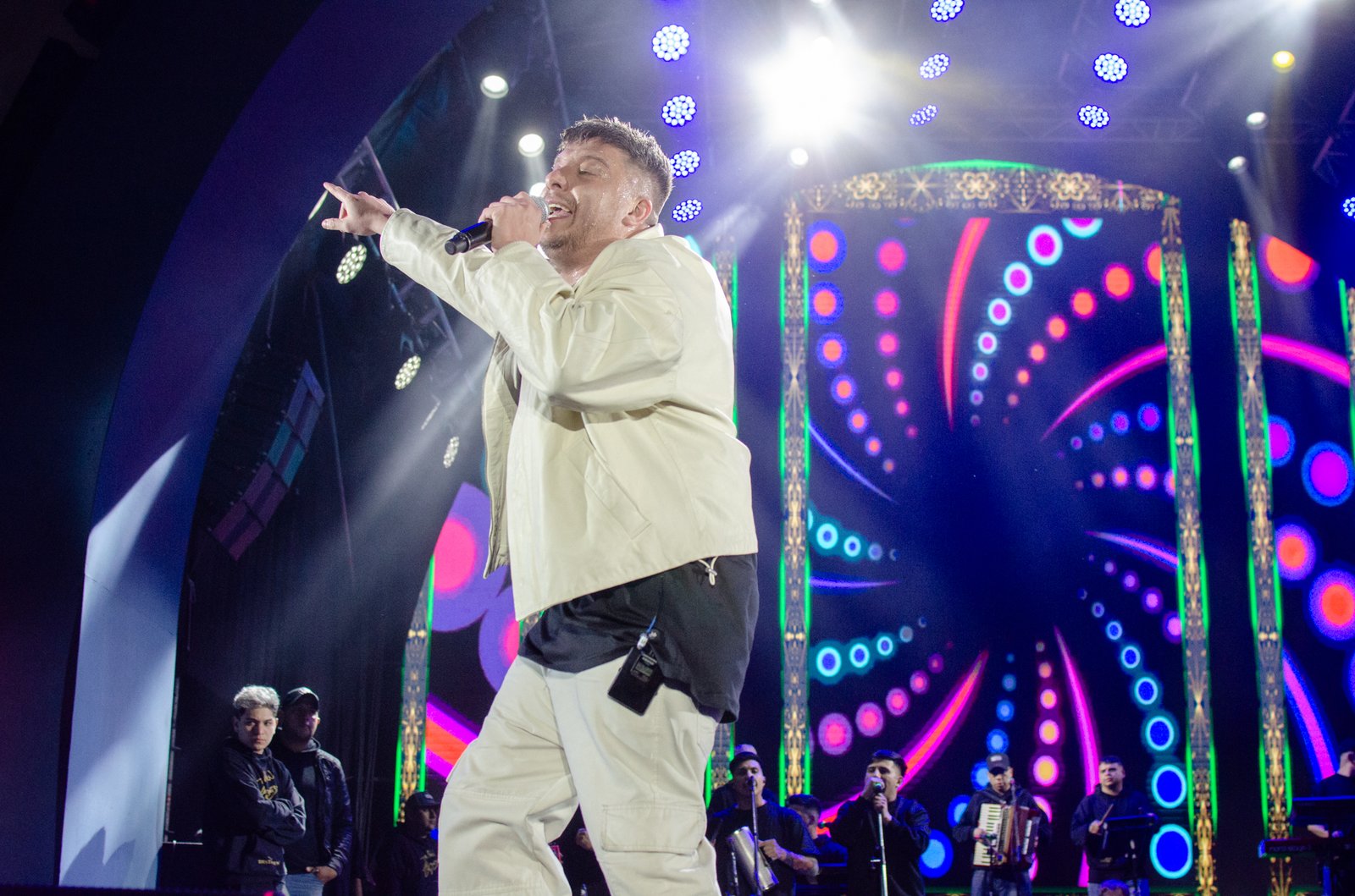 Uno de los momentos más emotivos fue la participación de su hijo, Máximo, que lo acompañó en escena tocando y cantando los temas favoritos del público. Además, Damián recordó con gratitud a tres grandes referentes del cuarteto que marcaron su camino: Walter Olmos, Rodrigo y La Mona Jiménez (será quien cierre la Fiesta Nacional del Poncho el próximo domingo).